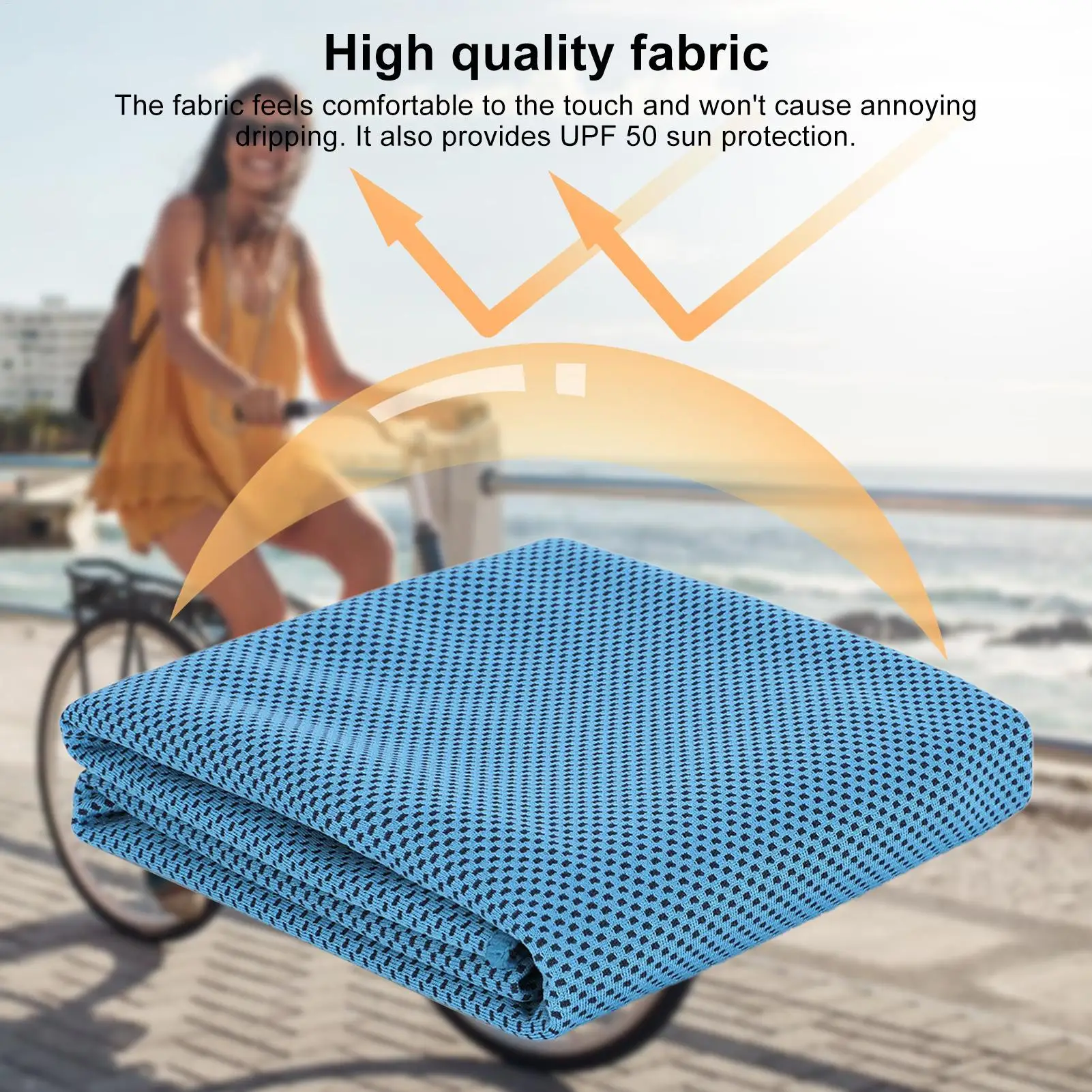 1.Breathable Material: This cooling towel is crafted with breathable mesh material that quickly absorbs sweat and water, keeping you cool and comfortable during any activity. The soft polyester fabric is gentle on your skin and easy to wash.2.Stay Cool: With our cooling towels, you can enjoy rapid cooling using physical evaporation. Keep yourself refreshed while absorbing sweat during workouts, hiking, or hot summer days.